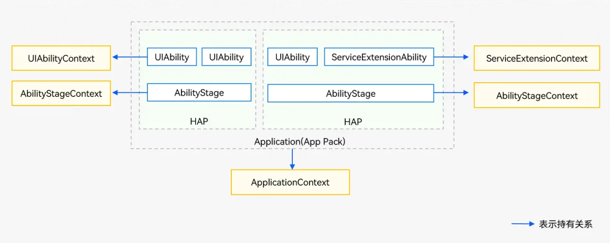 - 获取ApplicationContext。应用级别的Context。ApplicationContext在基类Context的基础上提供了订阅应用内应用组件的生命周期的变化、订阅系统内存变化和订阅应用内系统环境的变化的能力,在UIAbility、ExtensionAbility、AbilityStage中均可以获取。