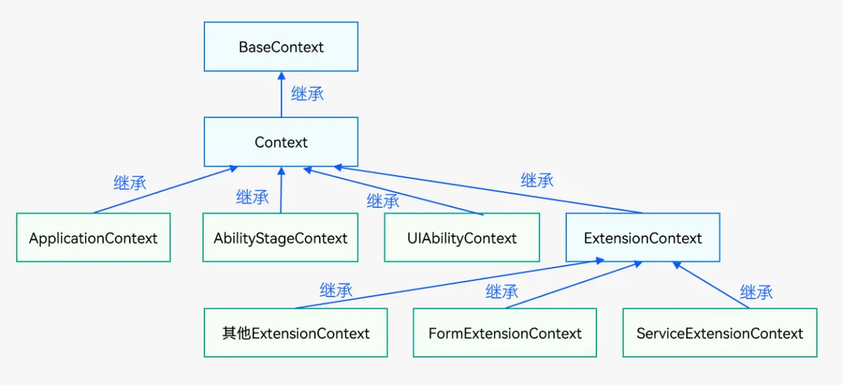 Context 是应用中对象的上下文,其提供了应用的一些基础信息,例如resourceManager(资源管理)、applicationInfo(当前应用信息)、dir(应用文件路径)、area(文件分区)等,以及应用的一些基本方法,例如createBundleContext()、getApplicationContext()等。UIAbility组件和各种ExtensionAbility派生类组件都有各自不同的Context类。分别有基类Context、ApplicationContext、AbilityStageContext、UIAbilityContext、ExtensionContext、ServiceExtensionContext等Context。