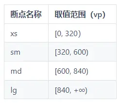 断点以应用窗口宽度为切入点,将应用窗口在宽度维度上分成了几个不同的区间即不同的断点,在不同的区间下,开发者可根据需要实现不同的页面布局效果。具体的断点如下所示。