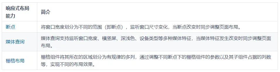 当前系统提供了如下三种响应式布局能力,后文中我们将依次展开介绍。