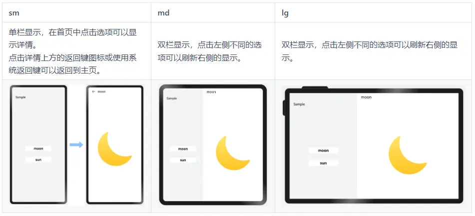 不同断点下,配置栅格子组件占据不同的列数,即可实现“小屏单列显示、大屏双列显示”的效果。另外,还可以通过栅格组件的onBreakpointChange事件,调整页面中显示的元素数量。