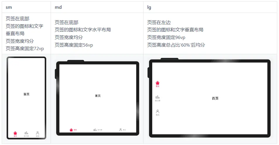 另外,页签栏中的文字和图片的相对位置不同,同样可以通过设置不同断点下 tabBar 对应的CustomBuilder中的布局方向,实现目标效果。