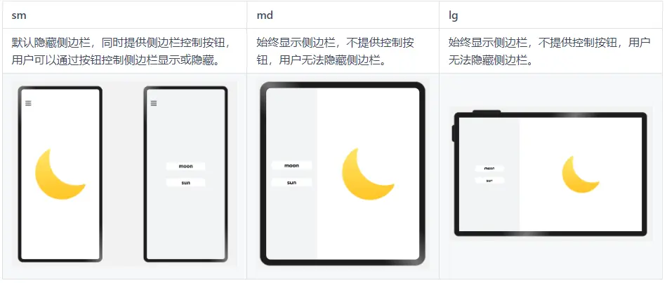 说明: 在本文 媒体查询 小节中已经介绍了如何通过媒体查询监听断点变化,后续的示例中不再重复介绍此部分代码。